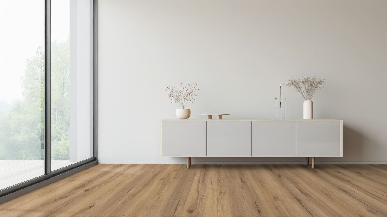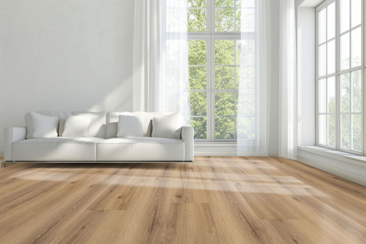 Mit einer Nutzschicht von 0,5 mm erfüllt der Klick-Multilayer Hybrid-Bodenbelag hohe Ansprüche und eignet sich für stark frequentierte Bereiche, in denen eine hohe Strapazierfähigkeit erforderlich ist. Gleichzeitig sorgt die 1,5 mm dicke Vinyl-Auflage für gelenkschonenden Komfort und eine fußwarme Oberfläche, die besonders angenehm beim Gehen ist. Der Bodenbelag ist auch für seine Geräuschreduzierung bekannt. Dank der 1 mm starken Trittschalldämmung aus Kork werden Gehgeräusche effektiv gedämpft, wodurch eine ruhige und geräuscharme Umgebung geschaffen wird.