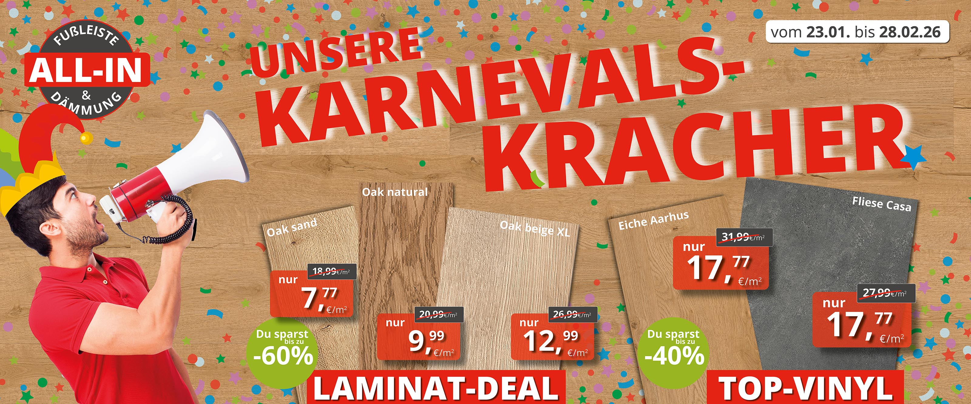 17.11 €/m² gespart All-in Laminat 8mm Landhausdiele Oak Natural